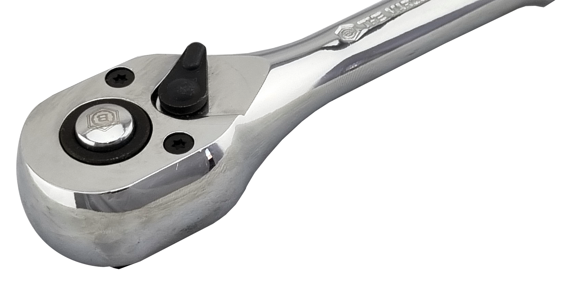 This 3/8"SD ratchet from the Britool Hallmark range has a fine tooth ratchet mechanism with 72 teeth enabling 5 degree increments in movement. It comes with a safety socket release button and directional change lever.