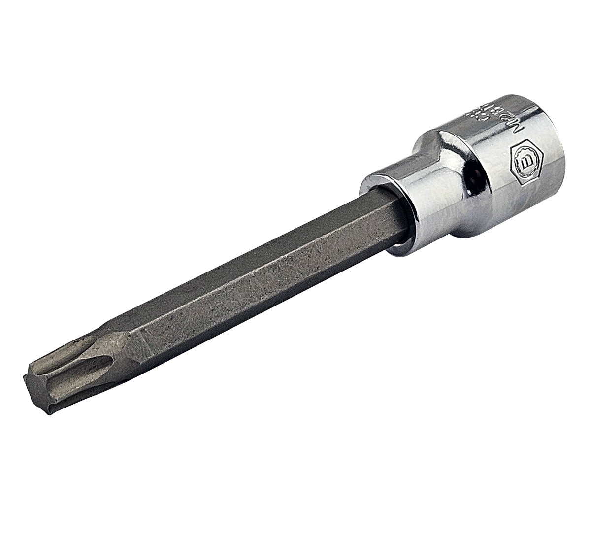 Each socket has a 6 point star (Torx TRX) shape screwdriver bit which is fixed into the socket and a ball retaining groove in each face of the square drive. This ensures a positive fit with all 3/8 inch accessories.