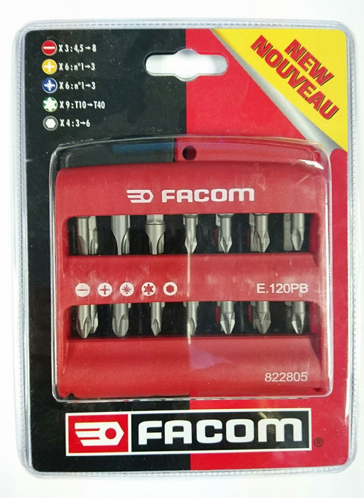 Facom E.120PB Screwdriver Bit Set (Torx, Phillips, Hex / Allen, Pz Pozi, Slotted)
