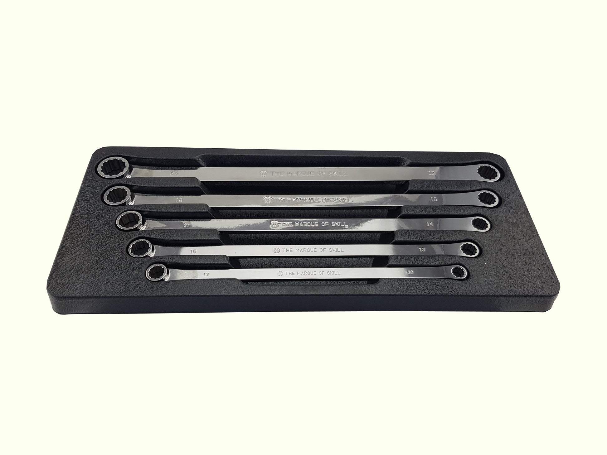 This Britool Hallmark Extra Long Ring Spanner Set is expertly crafted for professionals and enthusiasts working in automotive and aerospace industries, where precision and efficiency are essential. Specifically designed to excel in environments with tight or recessed access, these spanners provide unmatched versatility and performance.