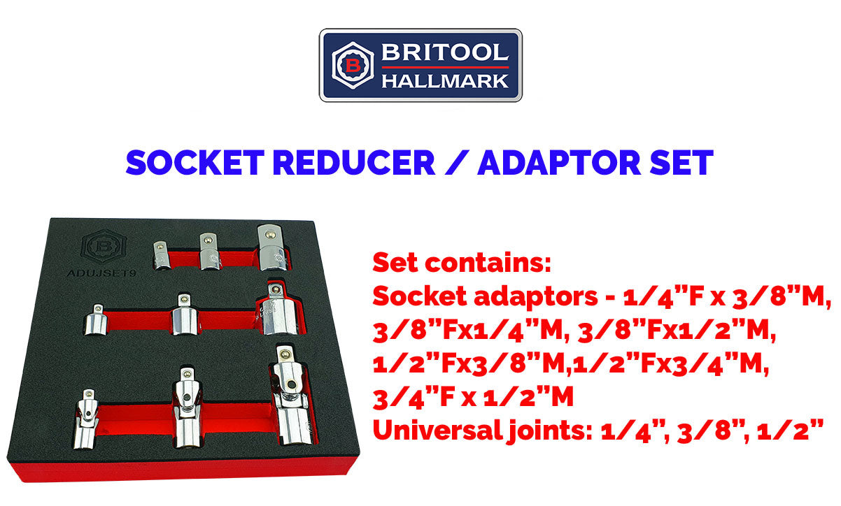 9pc Universal Joint & Socket Adaptor / Reducer Set From Britool Hallmark